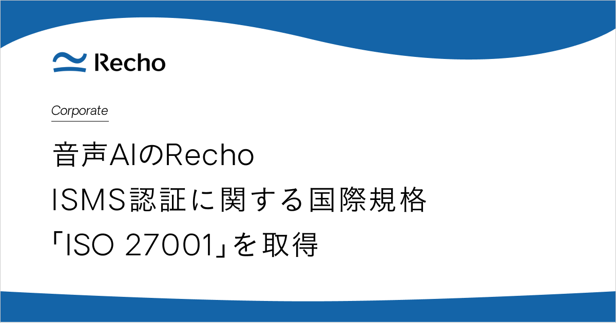 AIプラットフォームを提供する株式会社Recho(本社:東京都中央区、代表取締役:邱 実、以下「Recho」、読み:レコー)は、情報セキュリティマネジメントシステム(ISMS)の国際標準規格「ISO 27001」の認証を取得したことをお知らせします。引き続き、情報セキュリティ管理体制の強化に努め、Rechoのサービスを安全・安心にご利用いただける体制を構築してまいります。